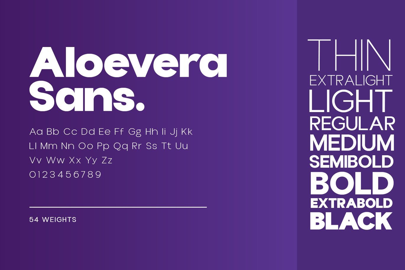 Aloevera display typeface is a Brand New Elegant Typeface with 54 Variants. It looks amazing in logos, magazines, and movies. The font would be perfect for branding, headlines, Captions, paragraphs, and posters. The various weights allow you to experiment with a wide range of applications. It's created to make an impression without sacrificing its beauty and readability.