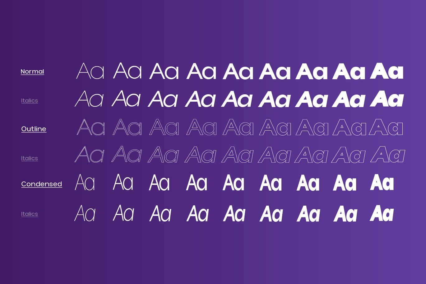 The Typeface includes Nine Weights -Thin, ExtraLight, Light, Regular, Medium, SemiBold, Bold, ExtraBold and Black.