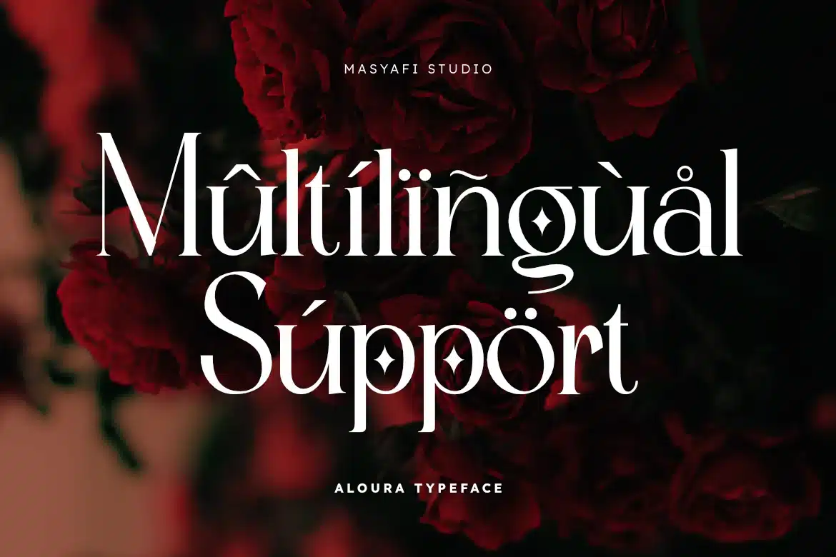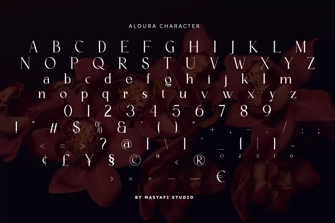 Alouria is a modern serif font featuring high contrast strokes and elegant decorative details. Its stylish letterforms make it ideal for branding, logos, packaging, invitations, and editorial design.