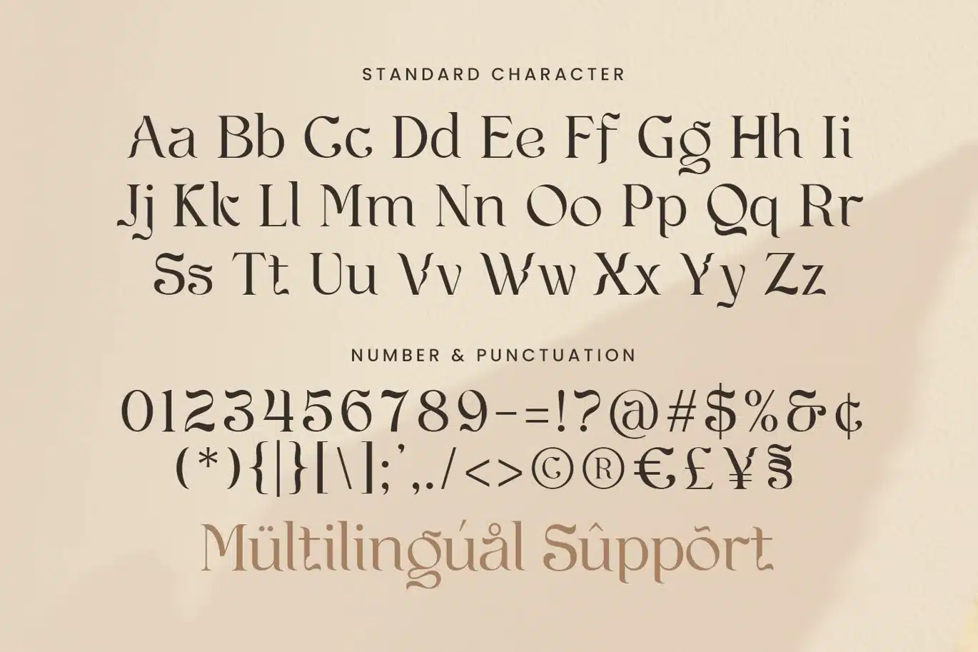 - Standard & Multilingual glyphs.