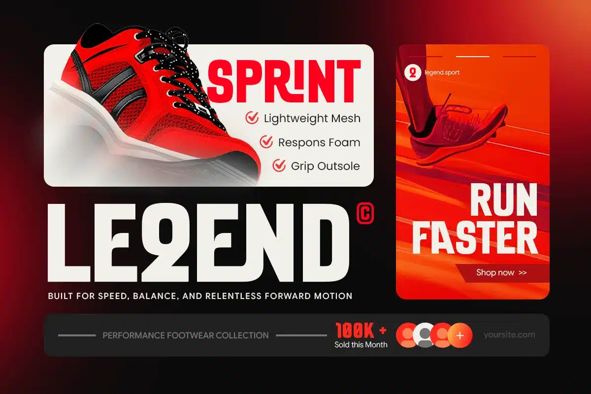 - Sharp dynamic letterforms with strong visual impact