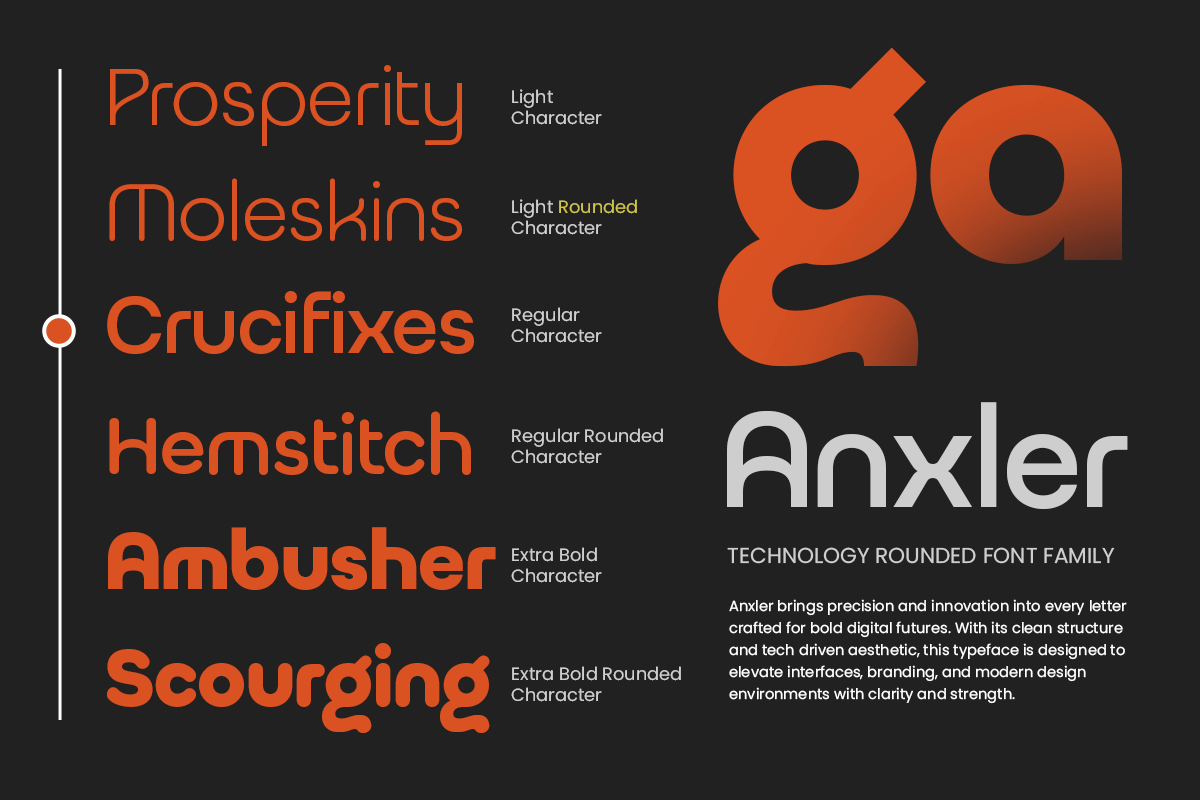 This font family includes a variety of weights and styles, giving you the flexibility to create strong, cohesive branding across print and digital media. Whether you’re designing a logo for a tech startup, building a professional corporate website, or crafting modern business collateral, ANXLER ensures your brand exudes sophistication and precision.