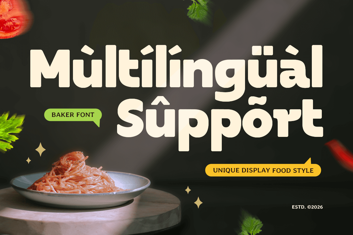 Designed to feel warm, tasty, and inviting, Baker brings strong personality while maintaining great readability. Its unique display style makes it ideal for bakeries, restaurants, dessert brands, street food concepts, food trucks, and creative culinary projects that want to stand out and attract attention instantly.