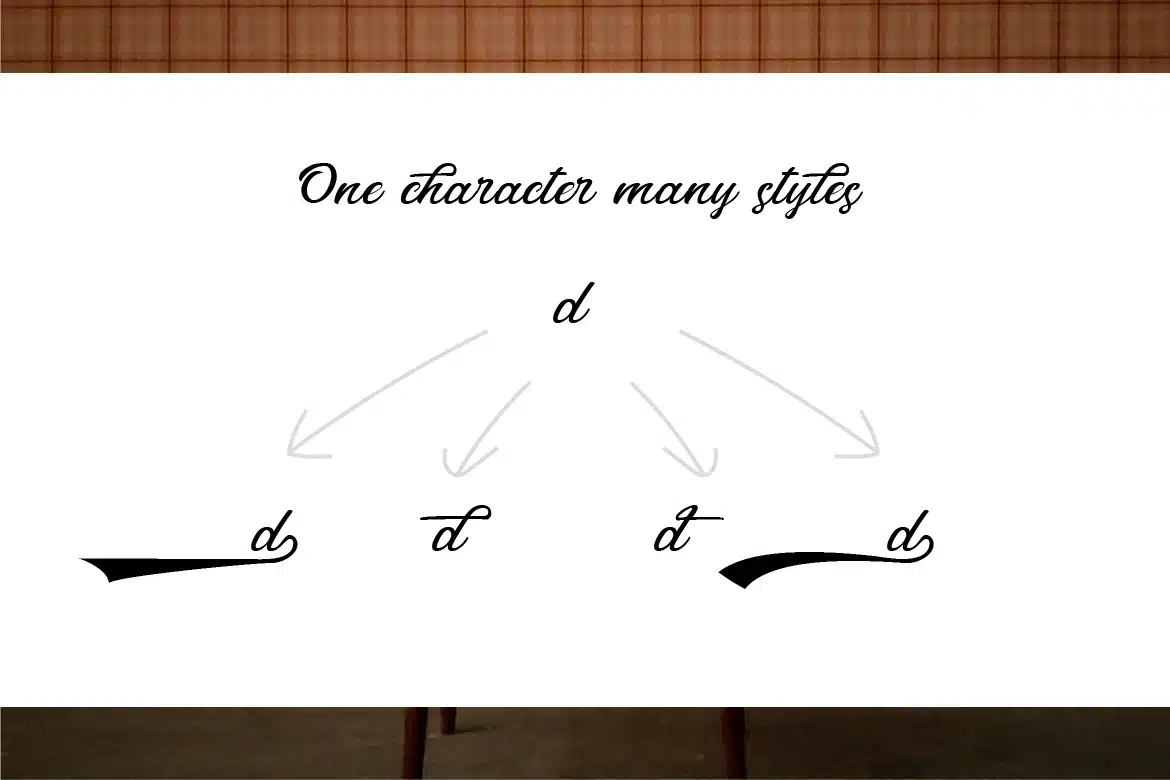 To access the alternate glyphs, you need a program that supports OpenType features such as Adobe Illustrator CS, Adobe Photoshop CC, and Adobe Indesign. More information about how to access alternate glyphs, you can see it on this link