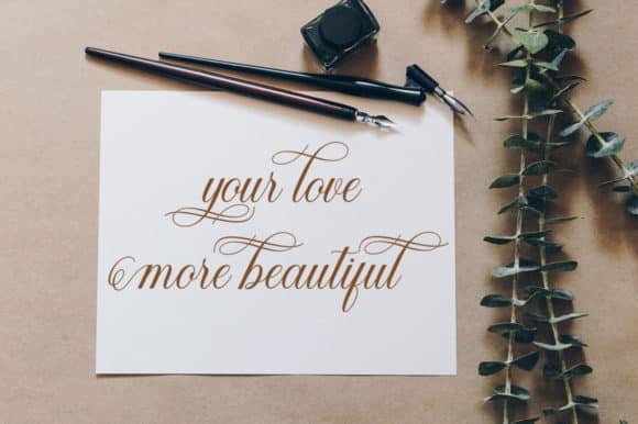 Bellarin feels incredibly elegant and flowing. It looks beautiful on thank you cards, quotes, greeting cards, logos, business cards, and every other design which needs a personalized touch. It features a varying baseline, smooth lines, gorgeous glyphs, and stunning alternates.