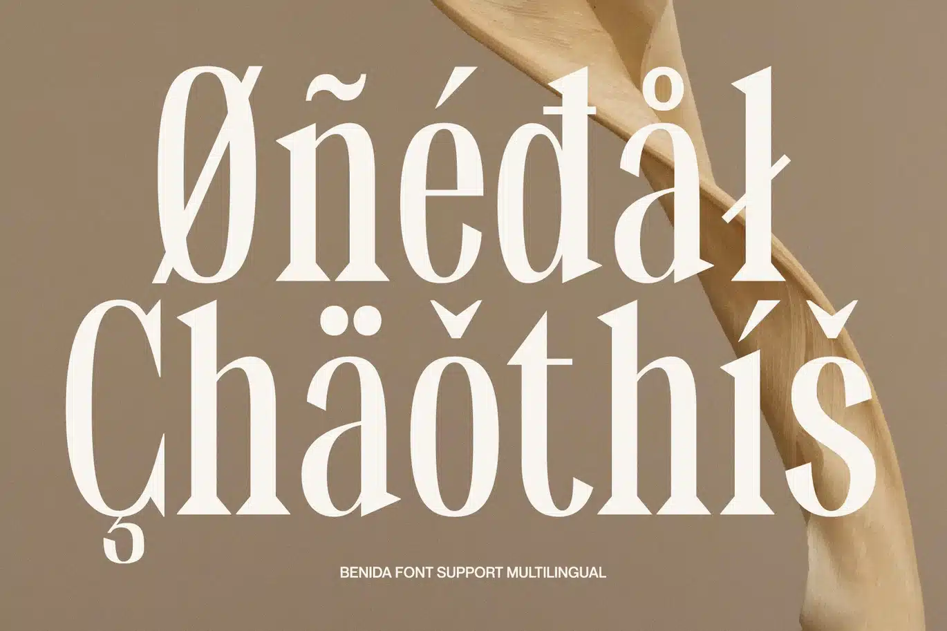 Benida features high-contrast serifs, adding sophistication to its look. The wedges in the serif are carefully crafted. These elements combine to create a distinct, impactful appearance. The font’s structure balances strength with grace, making it stand out. This balance ensures that Benida is suitable for both formal and creative uses.
