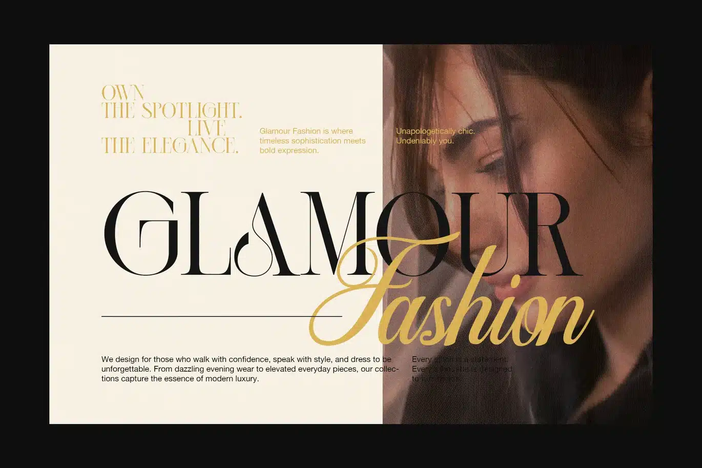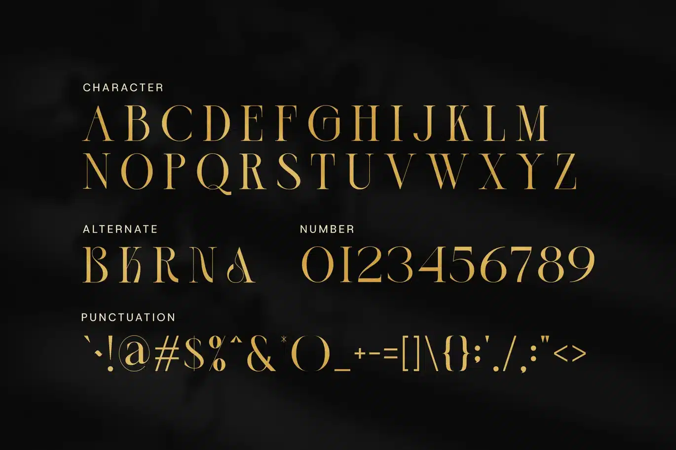 First of all, the font feels strong and elegant. The serifs give it a soft, classic touch. Yet, it still feels new and fresh. You can use it for fashion, business, or personal work. It blends well with both bold and minimal designs.