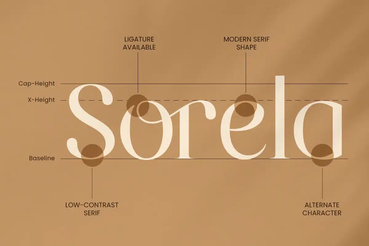 - Elegant serif letterforms optimized for logo and wordmark design