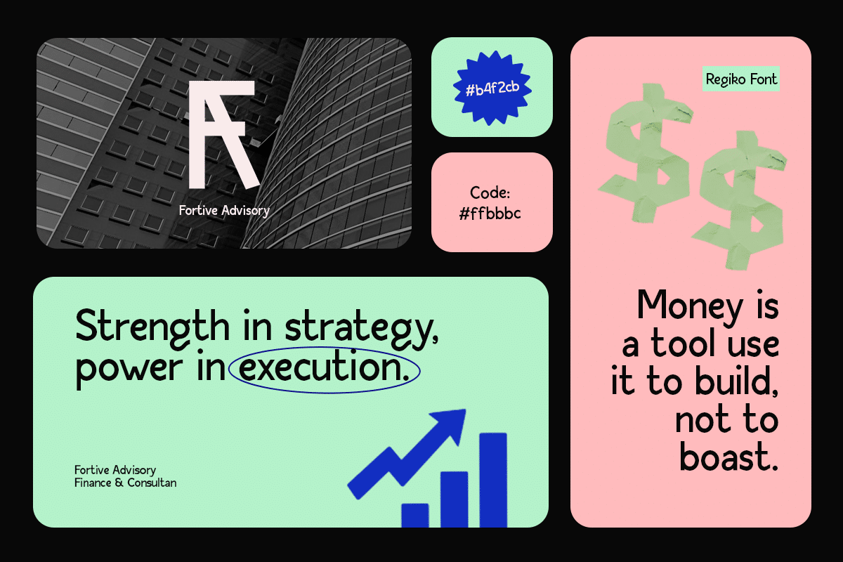 Regiko is a clean and modern sans serif font crafted for branding and corporate identity projects. Its rounded letterforms and balanced proportions create a friendly yet confident impression, making it ideal for businesses, startups, and creative professionals seeking a fresh and trustworthy look.
