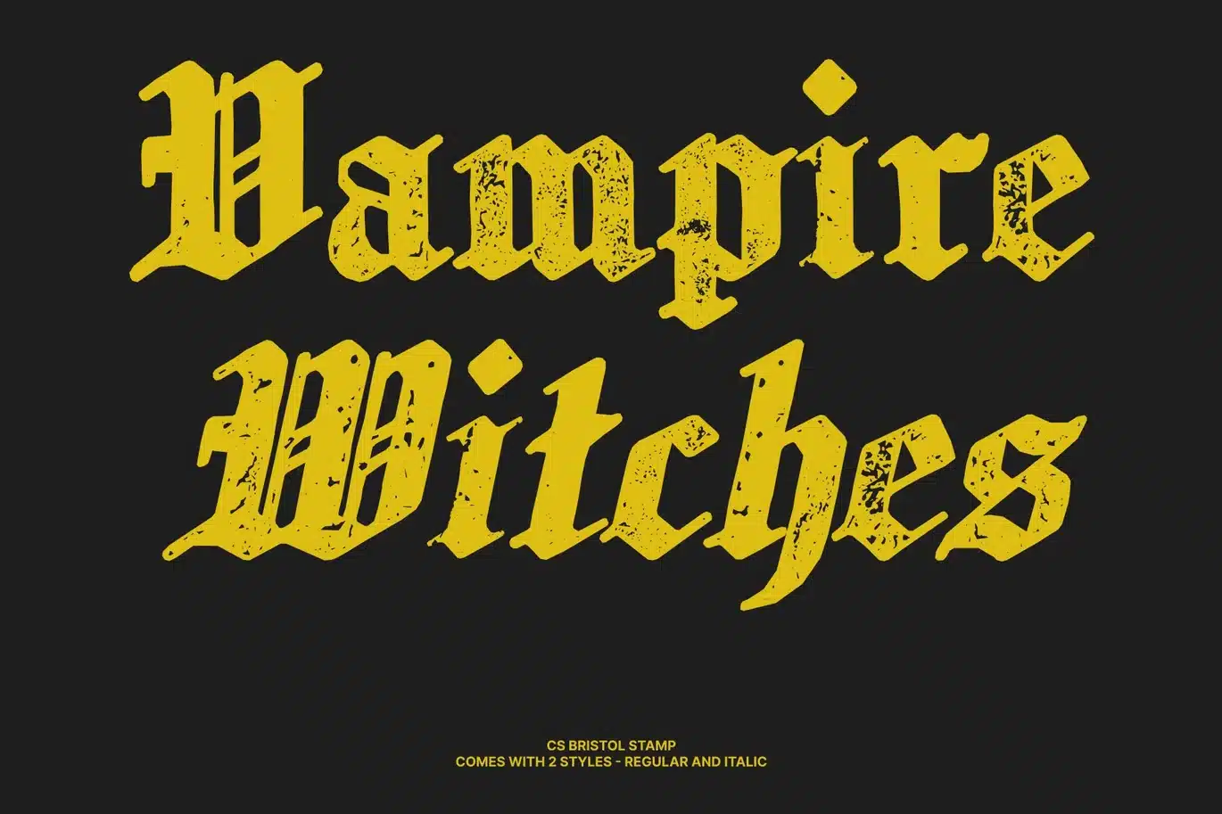 This is a distinguished display serif typeface inspired by the timeless Old English blackletter tradition. Its bold, angular letterforms reflect the elegance and authority of historical English writing, while the stamped texture introduces a subtle handcrafted quality. This combination creates a typeface that feels both classic and artistically textured.