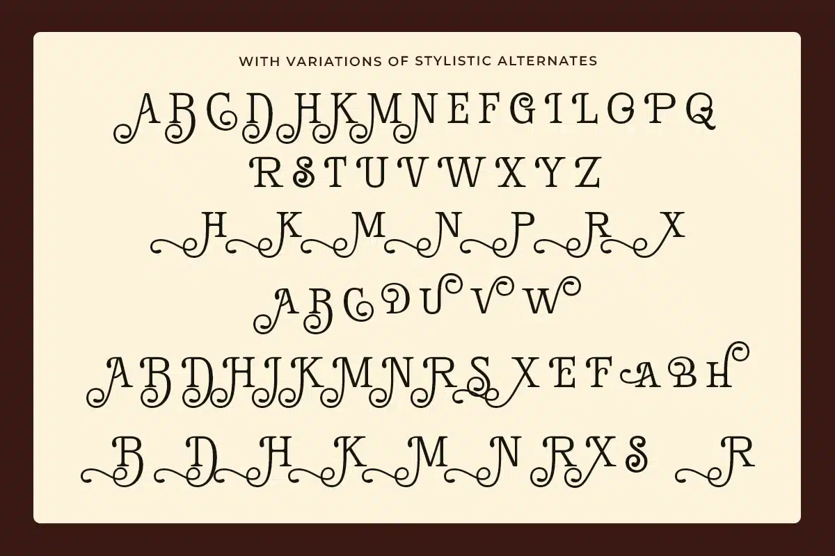 - Decorative swash serif typeface