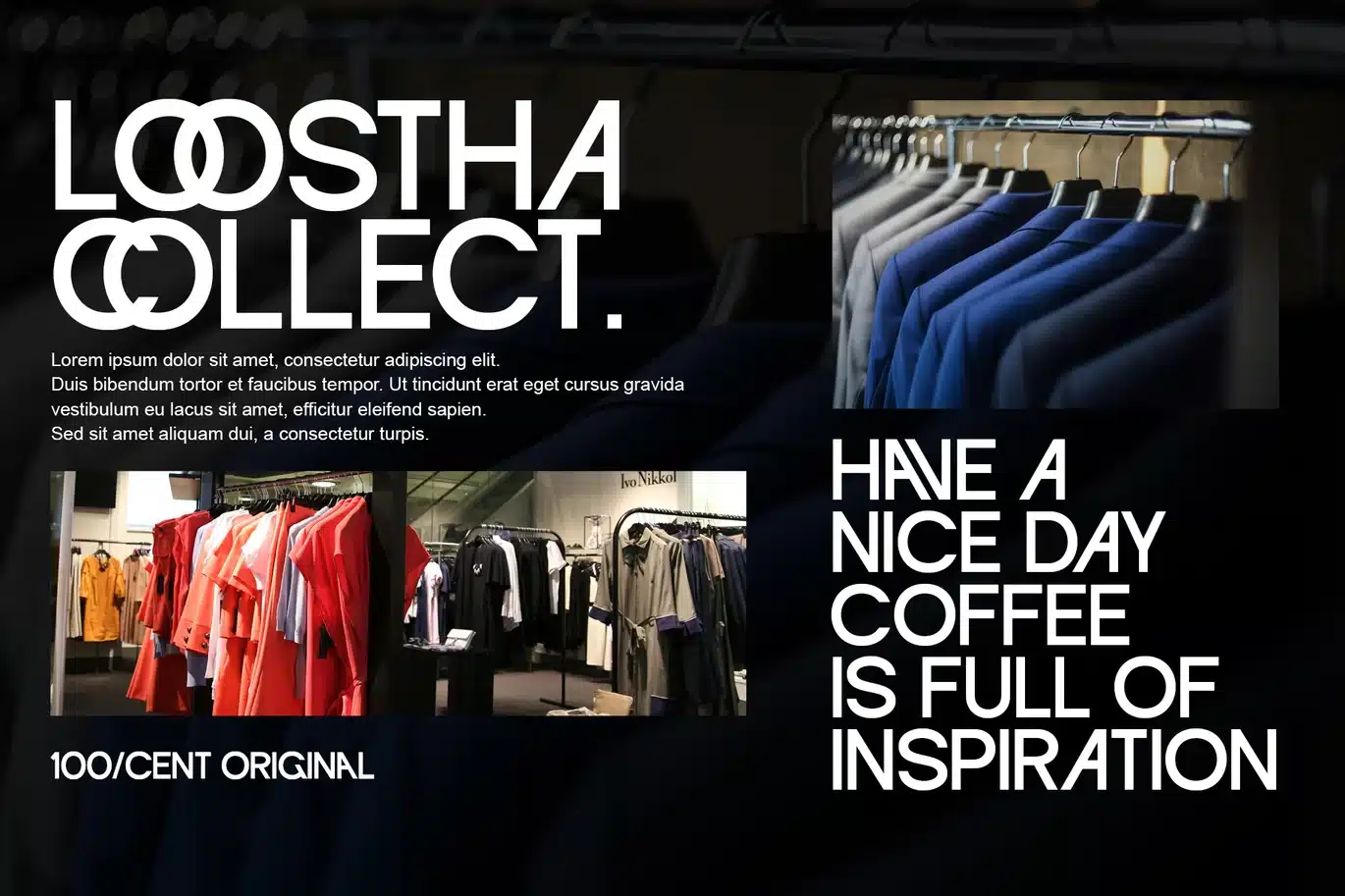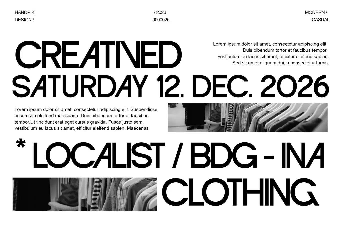 Its main characteristics lie in the exploration of geometric shapes and the use of unique ligatures, such as the interconnected letter combination "OO" that forms an iconic and memorable visual element. This detail provides an experimental touch without sacrificing readability.