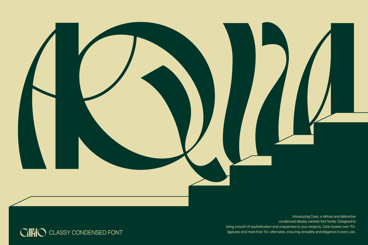 Cario Bold brings a modern flair to classic serif forms, making it ideal for designers who want their typography to feel both elegant and assertive. Paired with 85+ ligatures and alternates, this font gives you the creative flexibility to design standout visuals with refined detail.