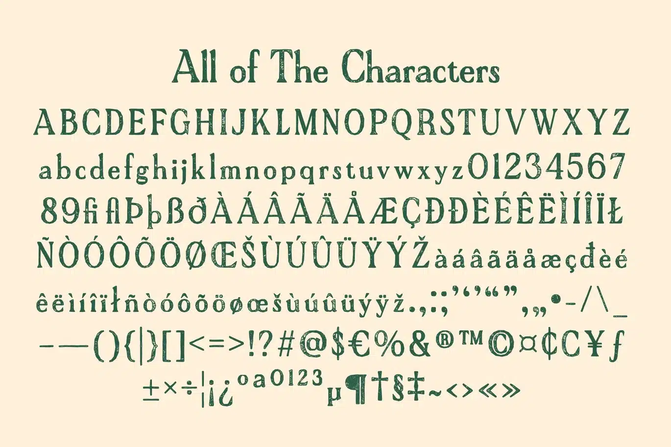 The compact structure allows more text to fit comfortably without sacrificing readability. Enhanced with a stamp effect, the font features delicate distressed edges and ink-like variations that evoke the charm of traditional printing. This textured finish adds warmth and personality while preserving the clean, structured form of the typeface.
