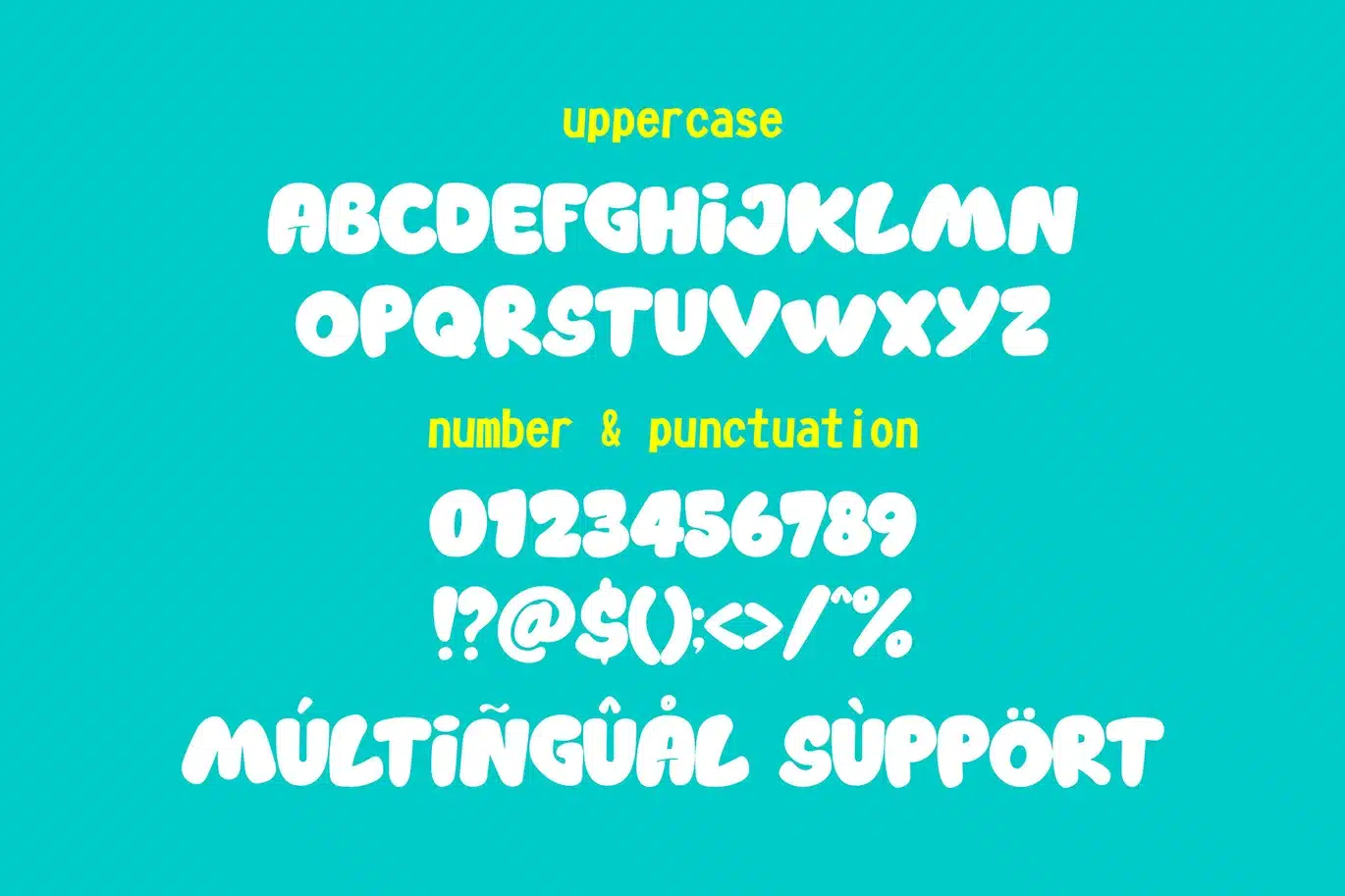 This font includes both uppercase and lowercase characters, giving you flexibility when creating layouts. Whether you are working on posters, children-themed content, product packaging, social media graphics, or educational materials, Chubby Popz helps communicate ideas in a clear and engaging way.