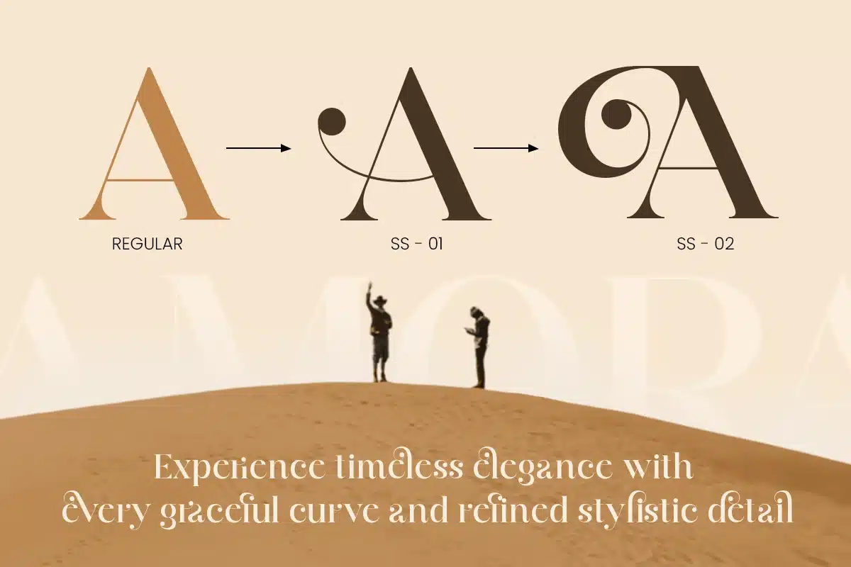 - Modern cinematic serif letterforms with premium character