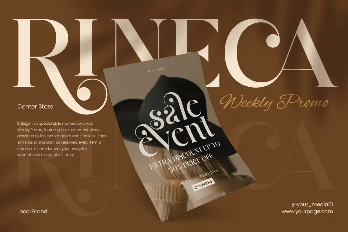Whether you’re creating a luxury identity, a cinematic poster, or an upscale editorial concept, Clarine delivers a refined serif style that adds prestige and storytelling power to every word.