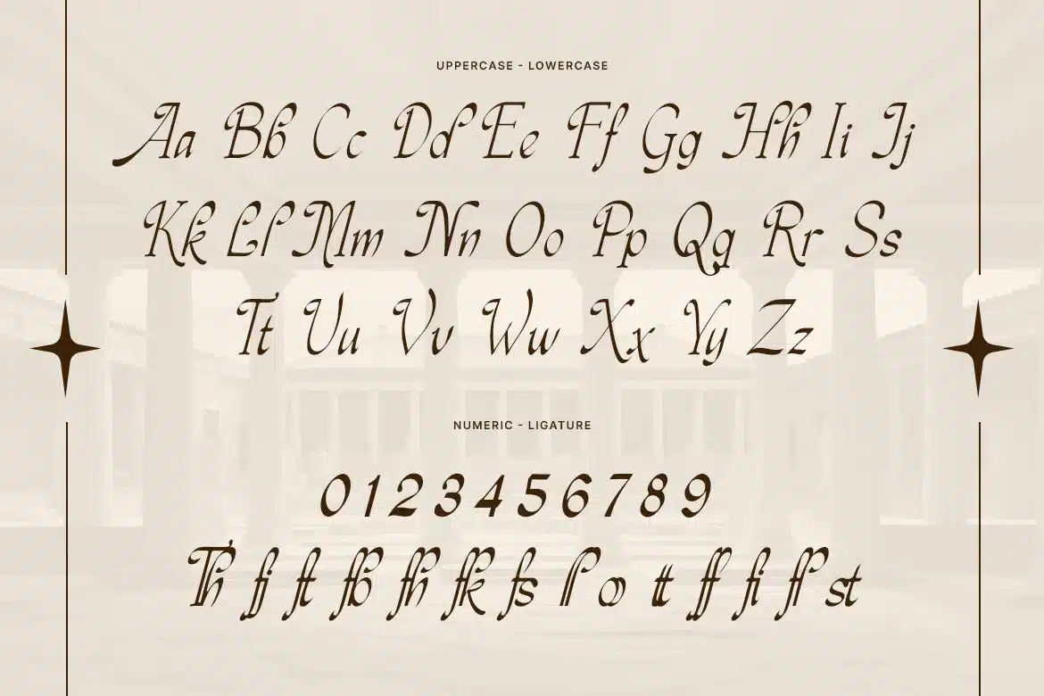 Ardavan includes uppercase and lowercase characters, numerals, ligatures, punctuation, and multilingual support, allowing flexible use across both print and digital design applications.