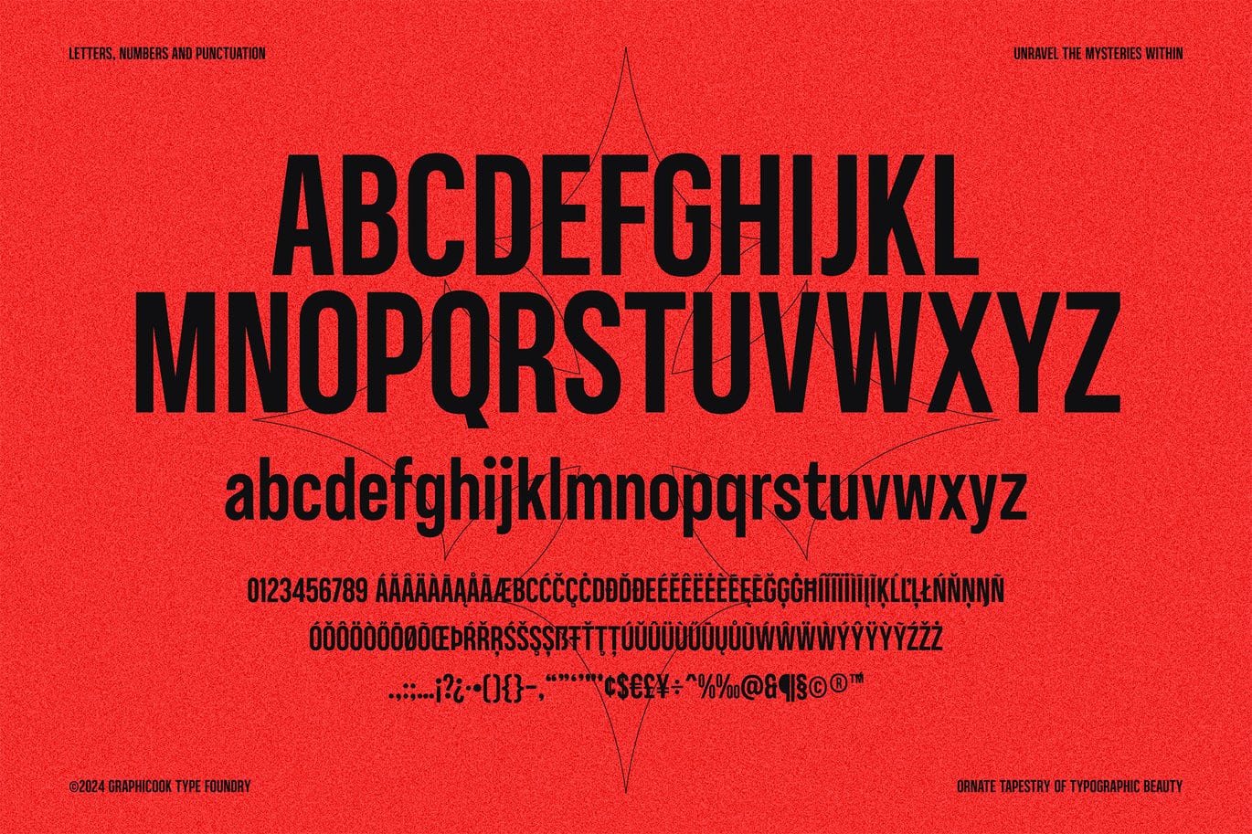 Conthic is a striking Gothic Condensed typeface that gives a touch of grunge style to your designs. With its condensed form, Conthic exudes a powerful and bold presence, capturing attention and effortlessly conveying a sense of strength and impact.