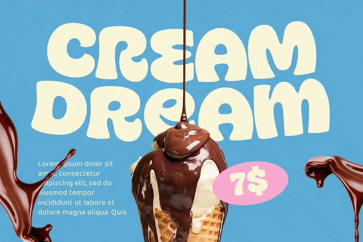 Corela Sweet Food Display Font is a bold and playful typeface inspired by delicious desserts and creamy textures. Its soft rounded shapes and smooth curves create a sweet, appetizing look that feels warm, fun, and highly inviting. The thick letterforms give strong visual impact while maintaining a friendly and tasty personality.