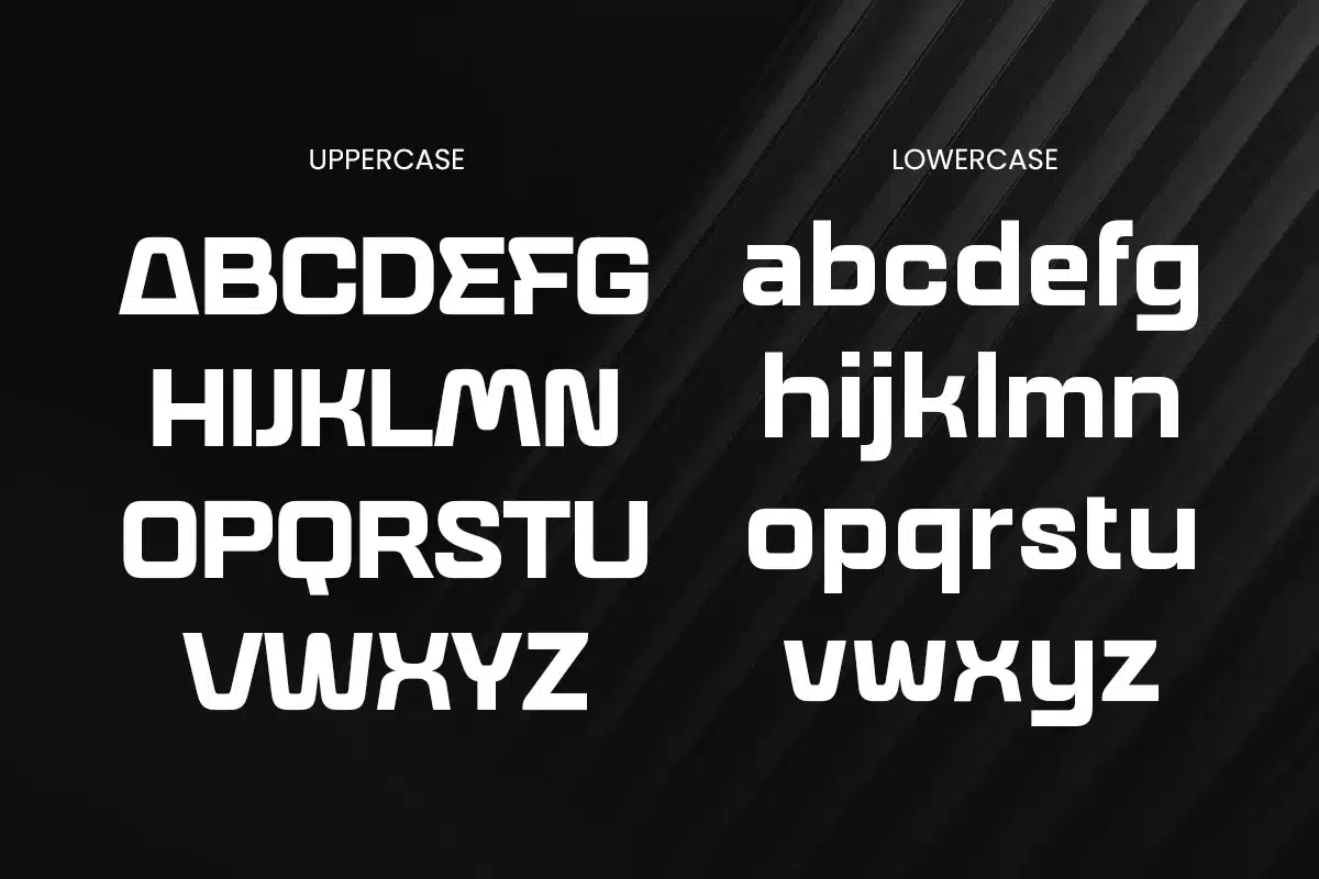 - Clean geometric shapes with optimized kerning