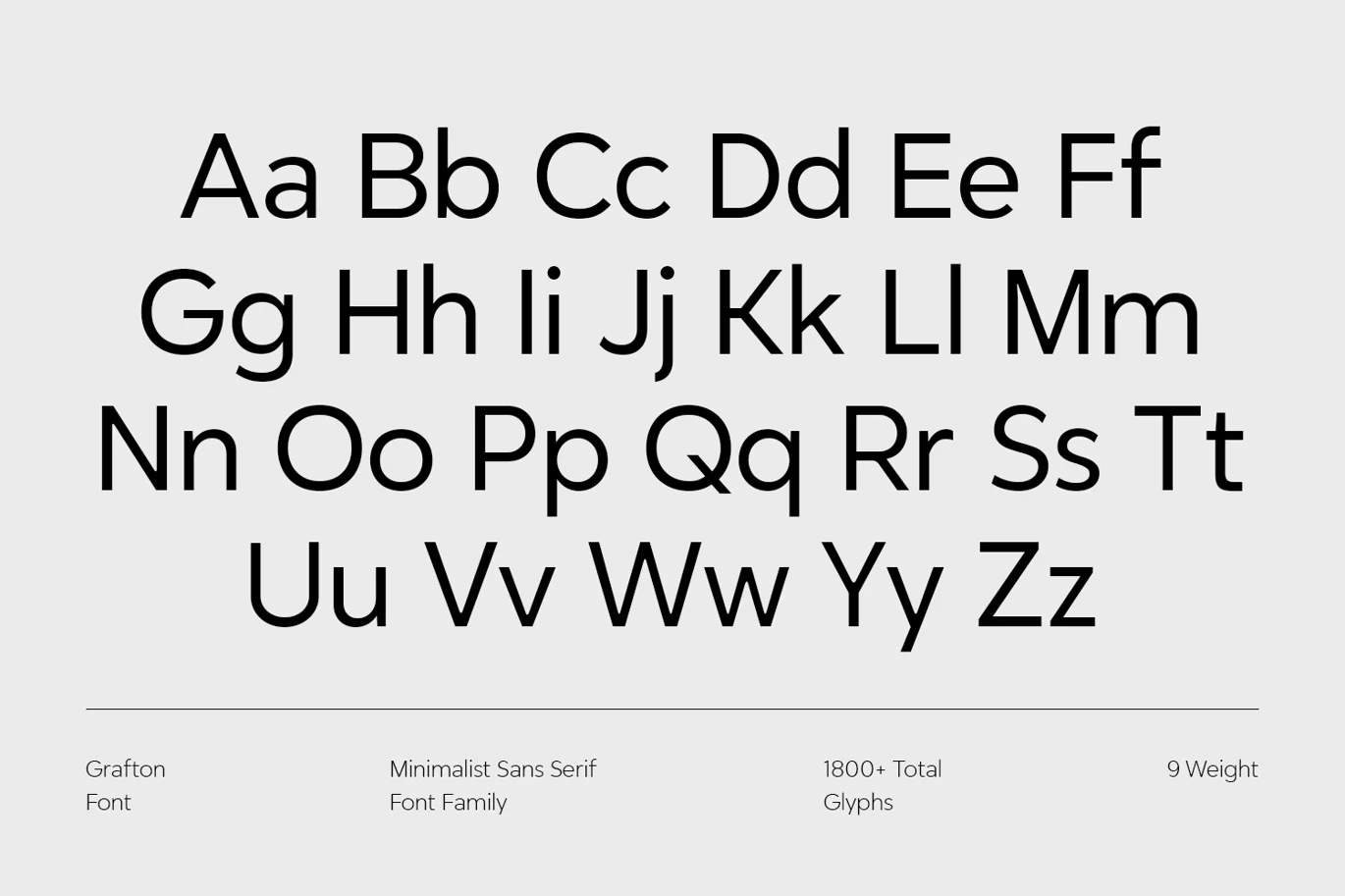 The geometric architecture of Grafton enhances legibility while preserving visual impact. Every shape and proportion has been carefully crafted to ensure clarity, even in complex layouts or smaller text sizes. This makes it suitable for a wide range of modern design needs, from minimalistic headlines to contemporary corporate identities.