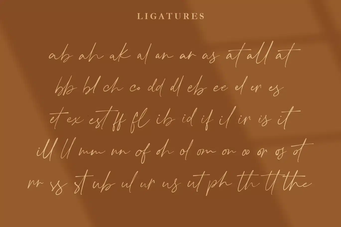 We have also added 30 style character binders (letter combinations) that have been built (see preview above) to make this font very beautiful.