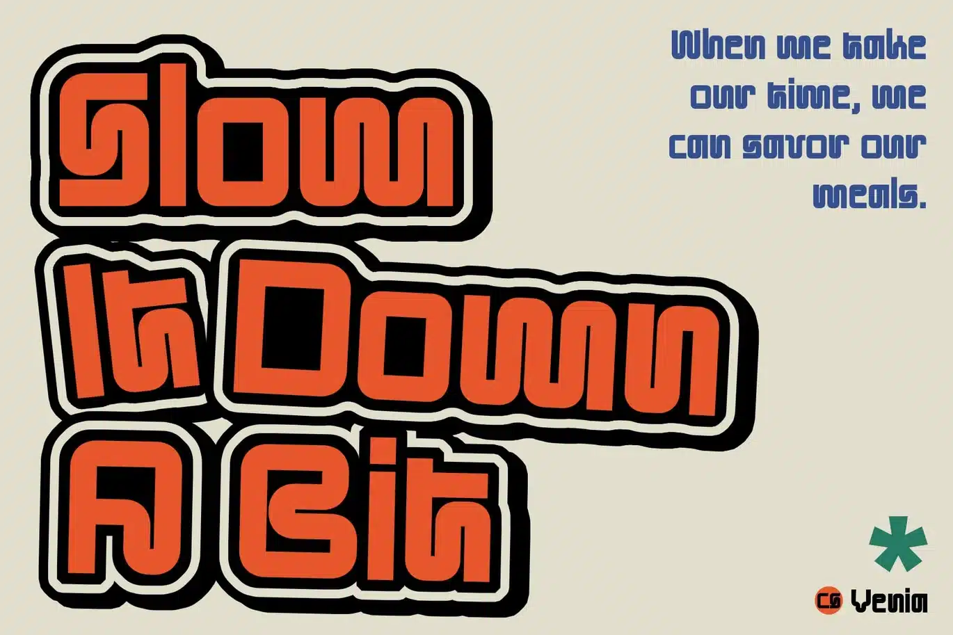 With its unique shapes and funky elements, CS Venia brings a unique style to designs, capturing the essence of retro charm while maintaining a modern appeal. This font is perfect for applications where creativity and distinctiveness are paramount, such as posters, branding materials, and promotional campaigns.
