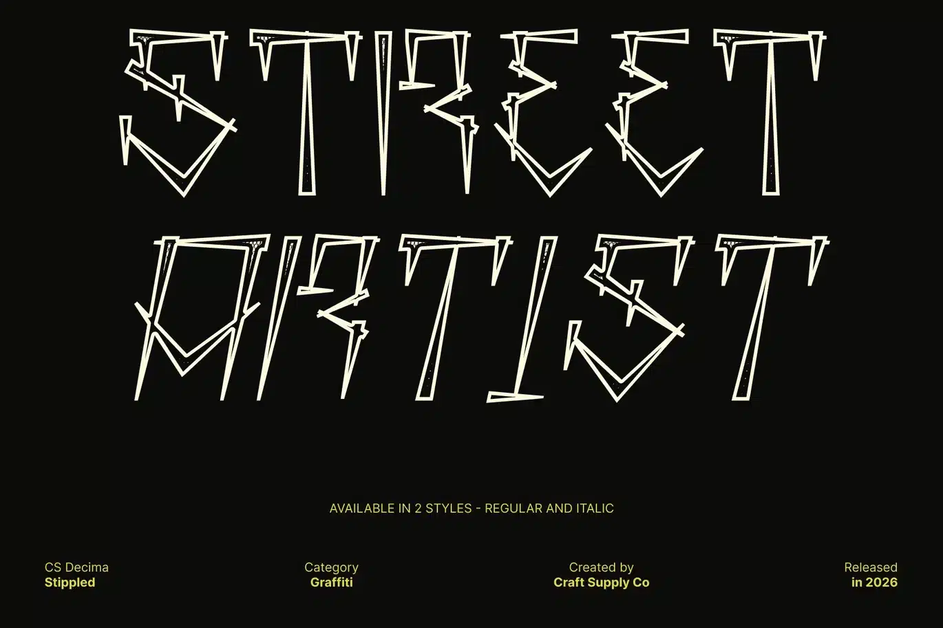 This is ideal for youth-oriented, music posters, event flyers, social media visuals, and urban-themed designs. By combining graffiti-inspired letterforms with a textured stippled finish, the font delivers a powerful street-style personality that helps designs stand out with energy and authenticity.