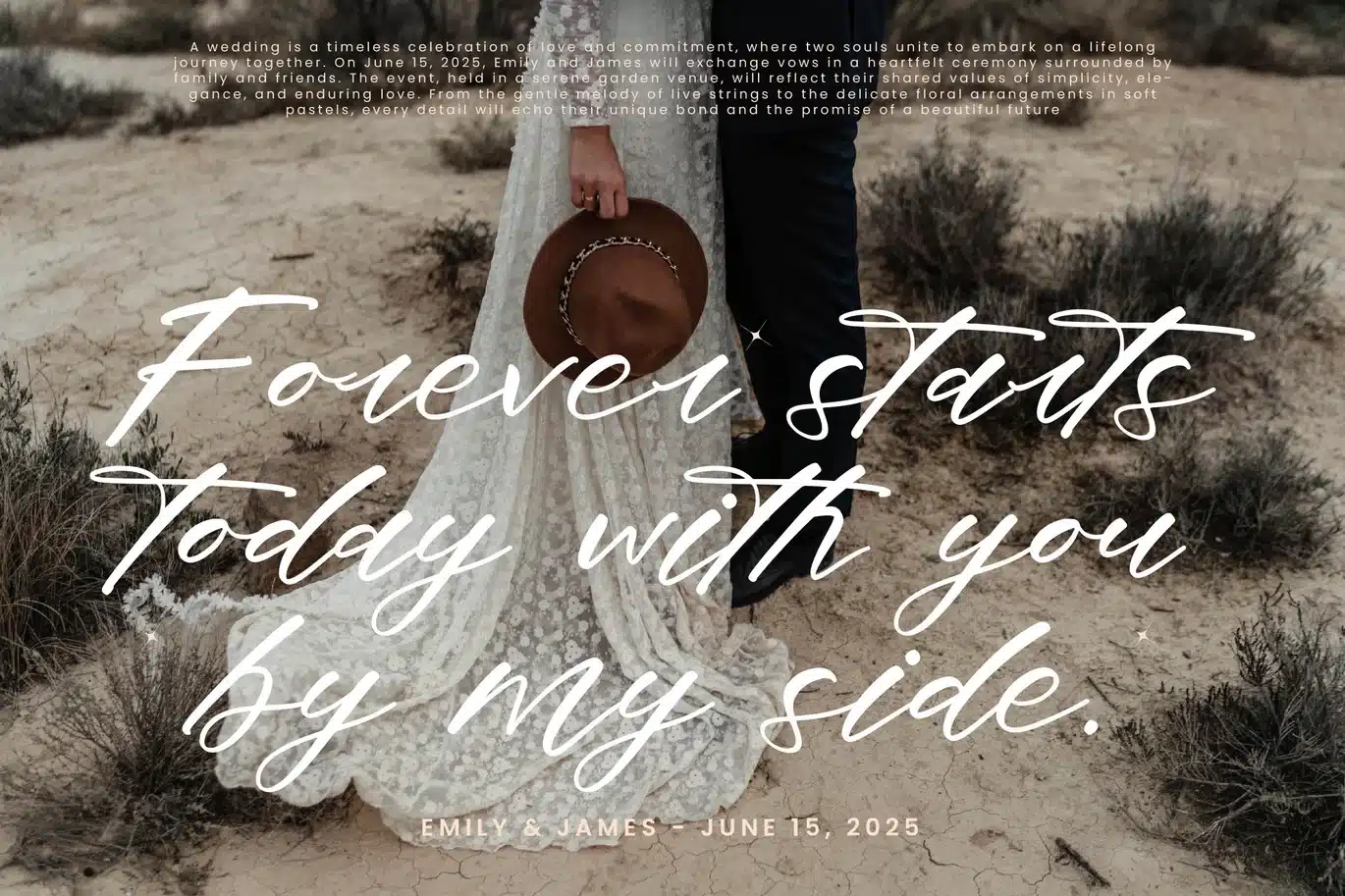 Dream Routes is a modern calligraphy script that blends elegance, creativity, and authenticity in every stroke. With its flowing ligatures, expressive alternates, and graceful swashes, this typeface is perfect for projects that need both sophistication and personality. Featuring 155 ligatures, 52 alternates, and a total of 539 glyphs, Dream Routes provides designers with endless flexibility to craft unique, customized lettering compositions.
