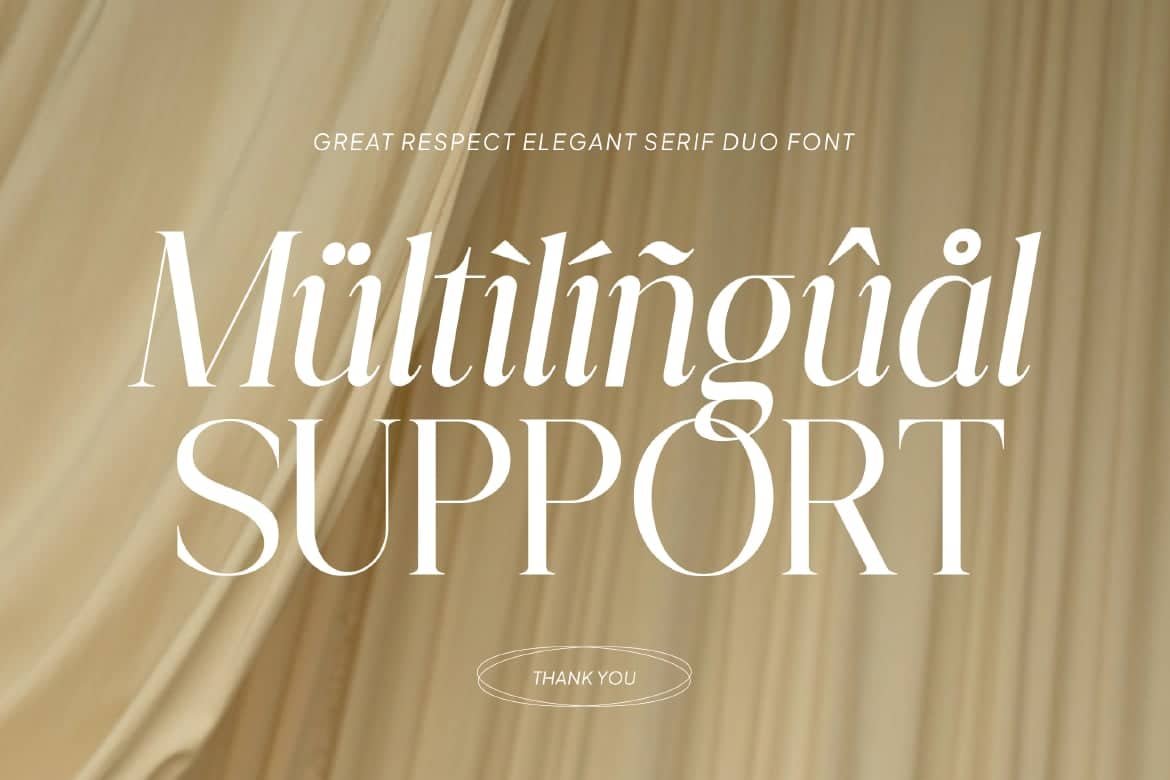Great Respect is an elegant serif font designed to deliver timeless beauty with a refined and sophisticated style. Featuring graceful curves and carefully crafted details, this typeface creates a luxurious and polished look that enhances any design. This font comes as a duo style with Regular and Italic, allowing you to create beautiful contrast and emphasis effortlessly. The italic style adds a soft, expressive touch, while the regular version maintains a clean and classic structure—together creating a harmonious and elegant typographic pairing.