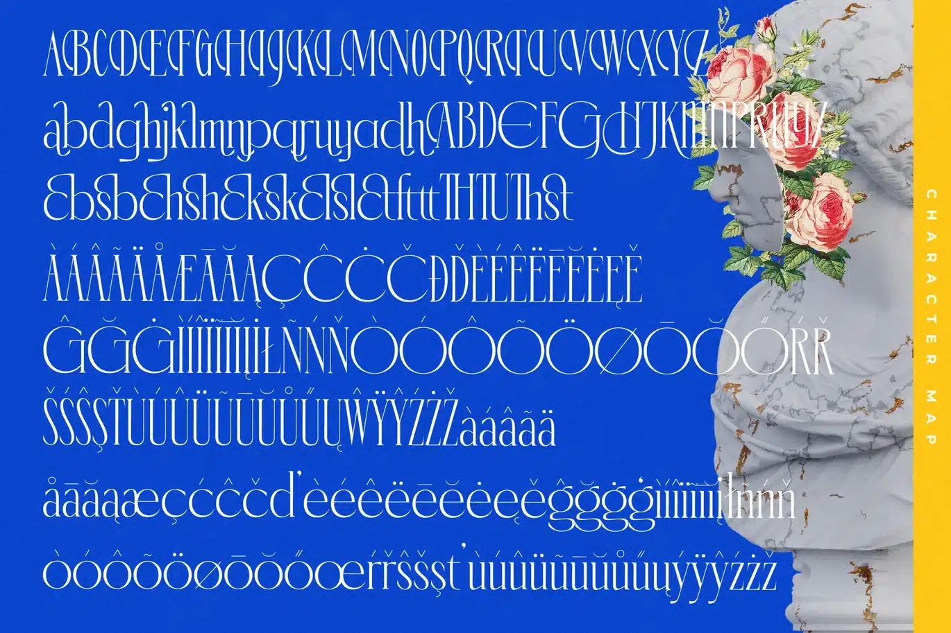 Emblora is a modern display serif font that balances elegance and contemporary design. Featuring 19 ligatures and 59 alternates, this typeface delivers a sophisticated yet artistic look with clean lines and graceful details. Perfect for luxury branding, editorial design, packaging, and invitations, Emblora brings timeless beauty and versatility to every creative project, making it suitable for both classic and modern aesthetics.