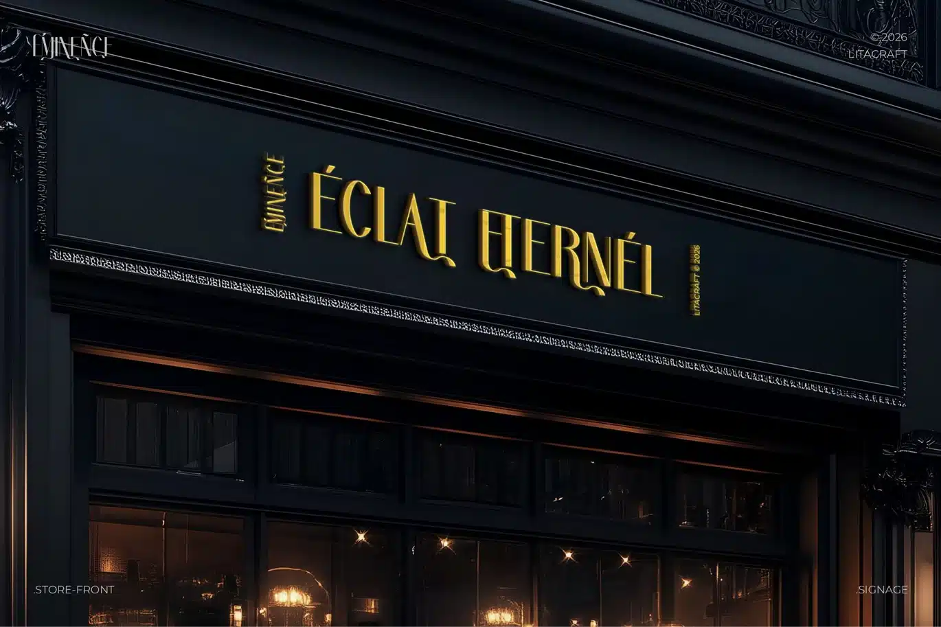 Eminence comes packed with a wealth of OpenType features, including over 200+ glyphs and a vast array of stylistic alternates and ligatures that allow you to create iconic logos with ease. Each character has been optically balanced to ensure a consistent "premium glow" in every layout.
