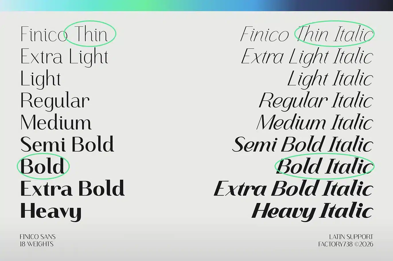 Perfect for designers who need a reliable modern sans serif for branding, editorial layouts, UI design, and social media content, Finico Sans provides a clean and timeless typographic voice.