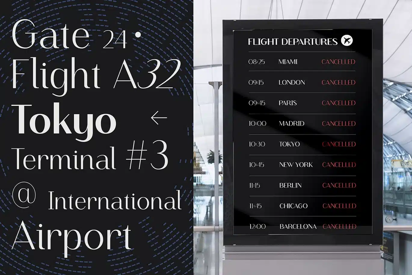 - 4 fonts total (Roman & Italic) – Thin, Thin Italic & Bold, Bold Italic