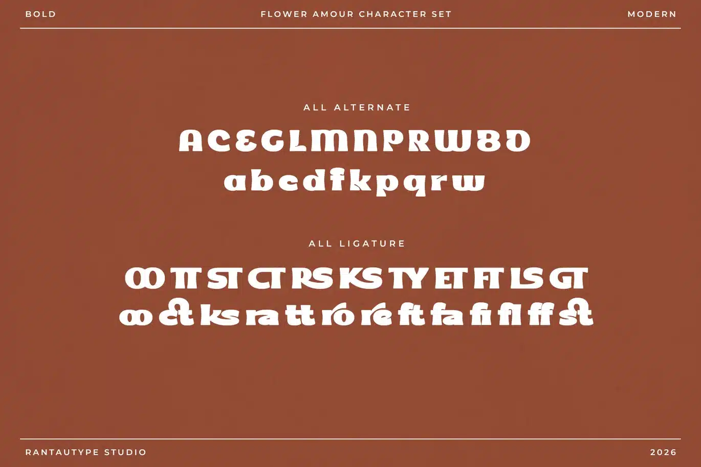 Flower Amour is a bold modern font with a vintage look captures the perfect balance between past and present, blending nostalgic charm with contemporary confidence. Designed to stand out, this style features strong, well-defined letterforms paired with subtle retro influences that evoke a sense of timeless character.