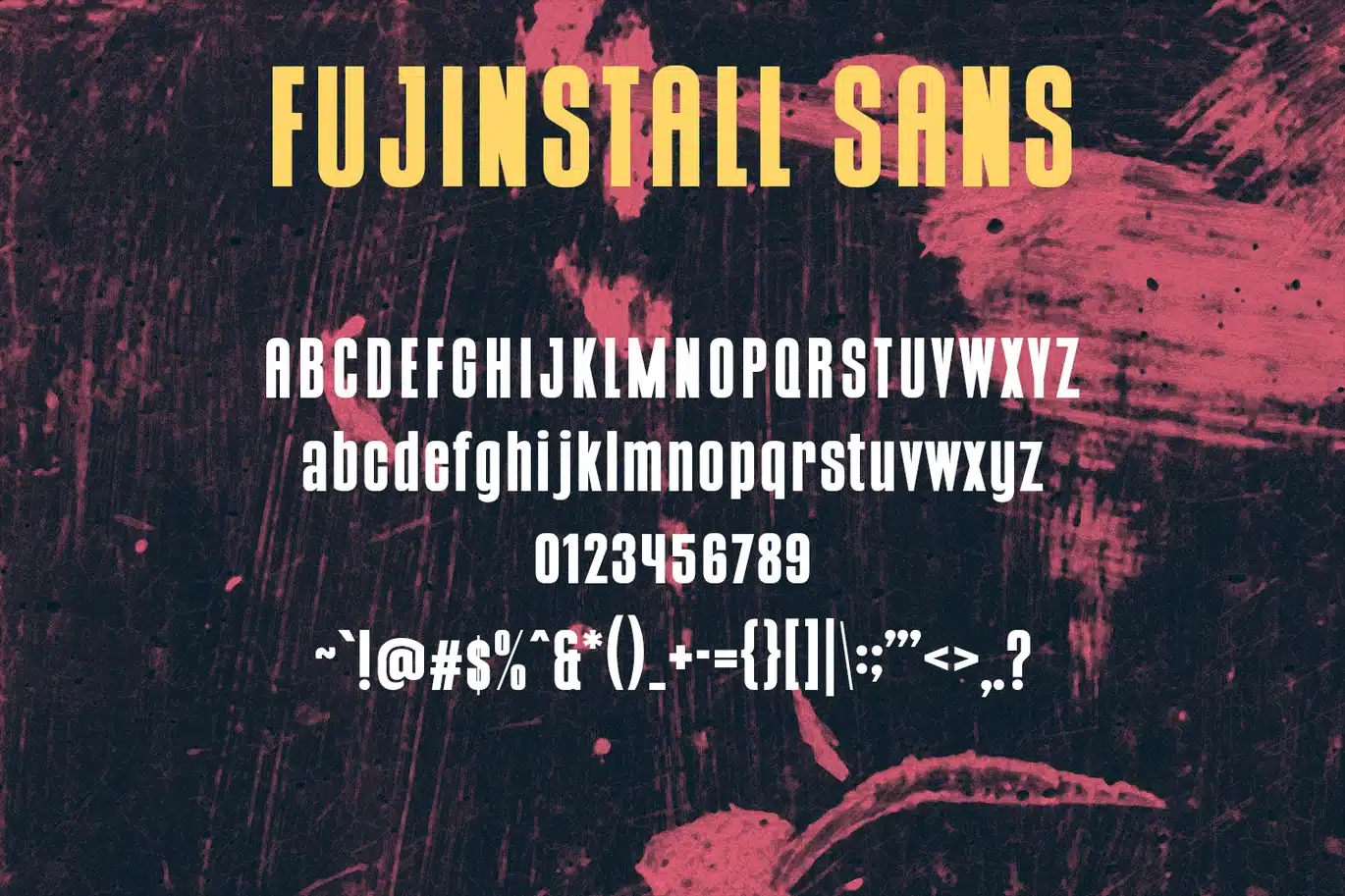 Fujinstall is a font duo script and sans. With mono-line script and bold weight sans stroke, Condensed sans and fun script character with a bit of script ligatures. To give you an extra creative work. Fujinstall font support multilingual more than 100+ language. This font is good for logo design, Social media, Movie Titles, Books Titles, a short text even a long text letter and good for your secondary text font with sans or serif. Make a stunning work with Fujinstall font.