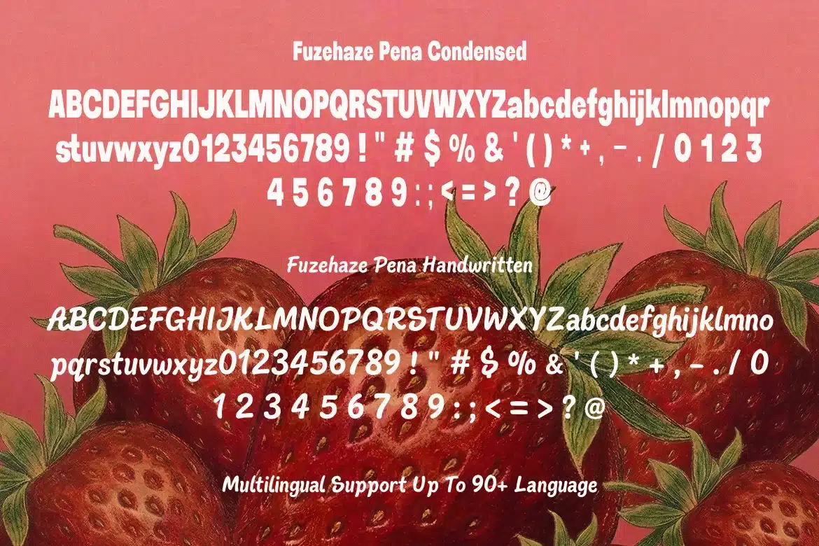 Designed to be both versatile and full of character, Fusehaze Pena includes a rich set of ligatures and alternates that allow for truly custom typographic layouts. Whether you're working on a playful food & beverage brand or a vibrant digital campaign, this font adapts beautifully to both print and digital projects, providing endless creative possibilities across a global scale with its extensive support for 98 languages.