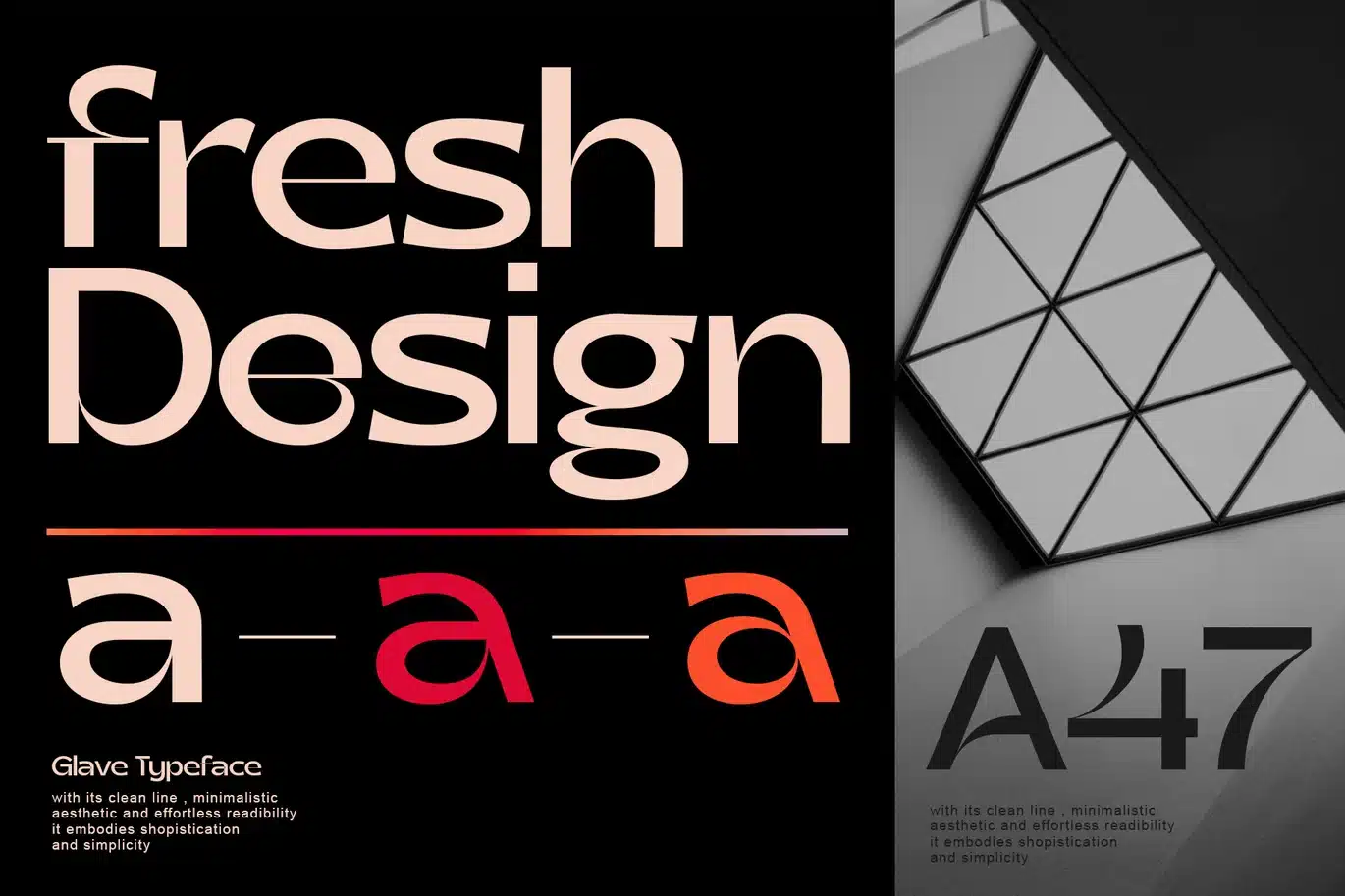 Glave is a modern display typeface that blends minimalist beauty with a distinctive, refined character. Crafted with clean lines and precise proportions, it delivers an elegant presence without excess—perfect for brands that aim to appear premium, sophisticated, and confidently unique.