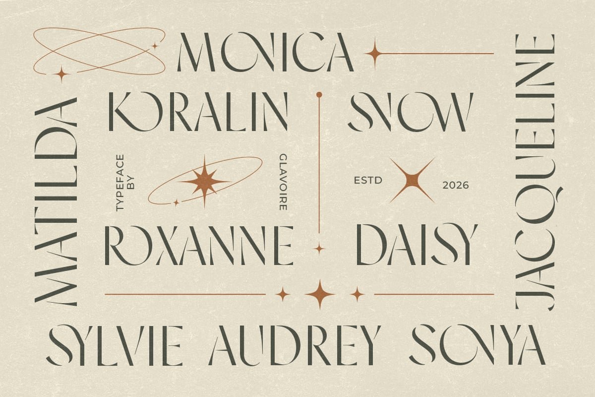 Glavoire is an elegant stencil sans with stylish ligatures. Carefully crafted each characters, the shape of this font can give you an instant luxury looks to your project. You can use this font for any purpose such as logotype, branding or even wedding invitations. And you will get OTF/TTF file that you can install and use in any software designs especially Adobe Photoshop and Adobe Illustrator. This font also support multi language.
