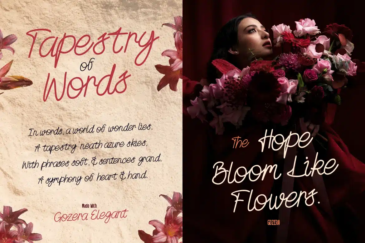 Together, the two styles in Gozera offer a harmonious visual contrast. The result is a design that feels both strong and graceful—perfect for elevating your brand while still remaining approachable and stylish.