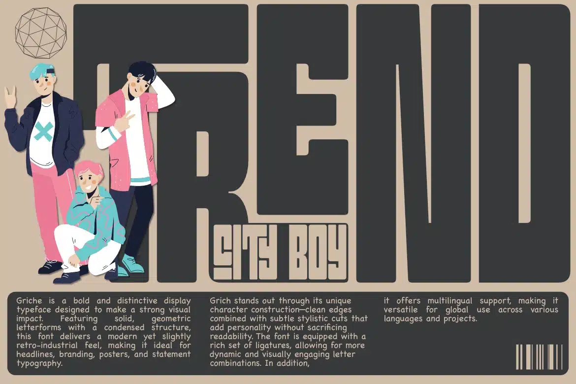 With its confident presence and refined details, Griche is perfect for designers looking to create bold, eye-catching compositions while maintaining a clean and professional aesthetic.