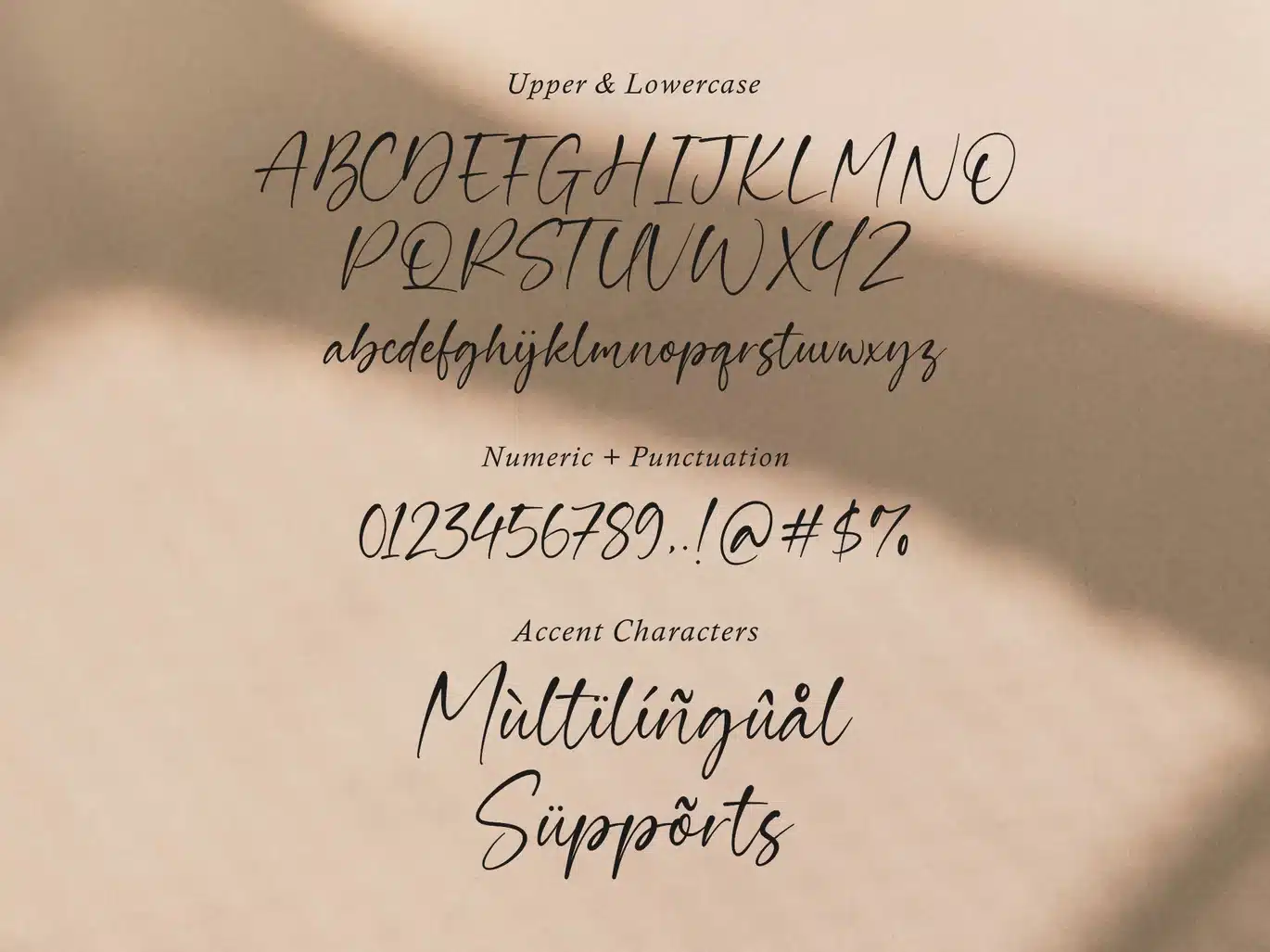 Elevate your design projects with the enchanting beauty of "Guardian," a captivating modern calligraphy script font that exudes elegance and style. With its sweeping and fluid strokes, "Guardian" adds a touch of sophistication and grace to any creative endeavor.