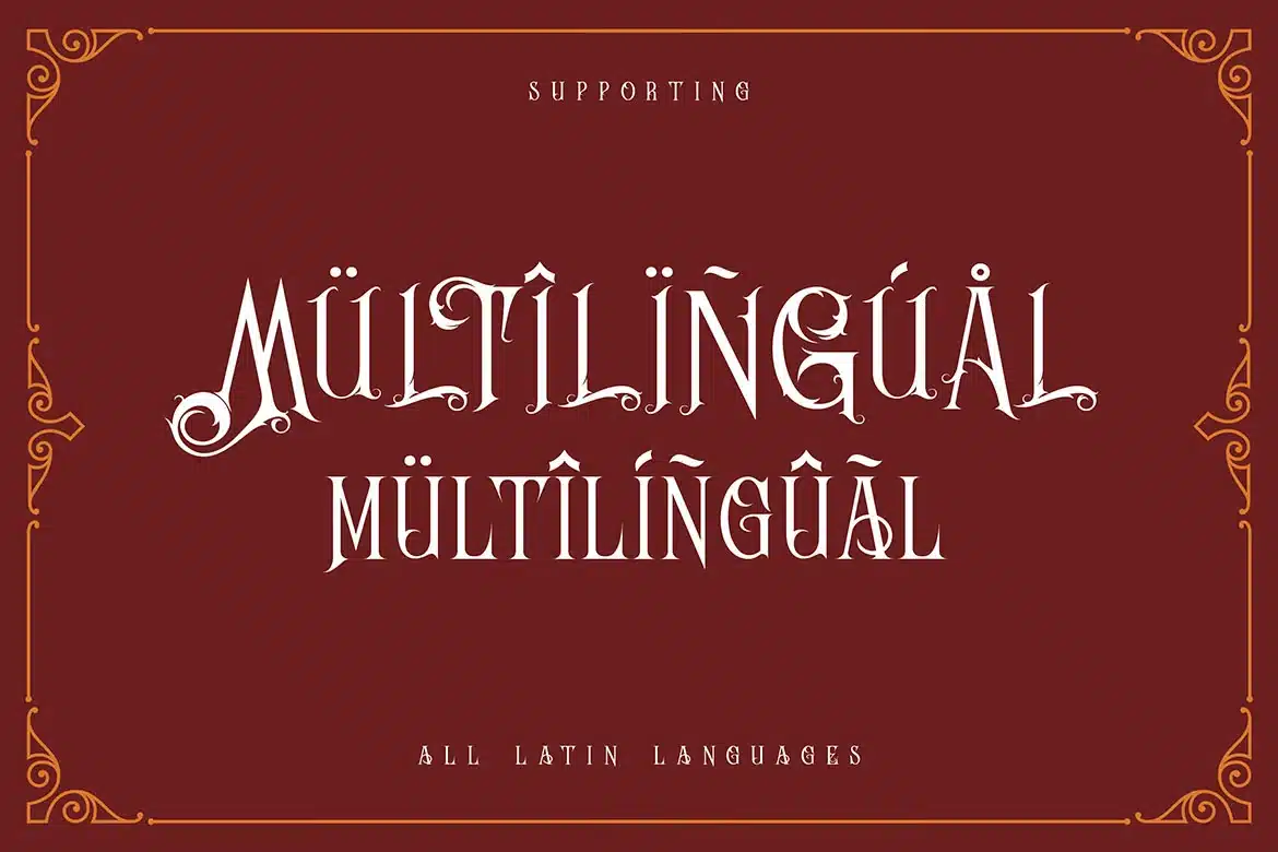 Unique vintage & ornamental, decorative style custom serif font. Comes with multilingual support - great for your new logo or branding project.