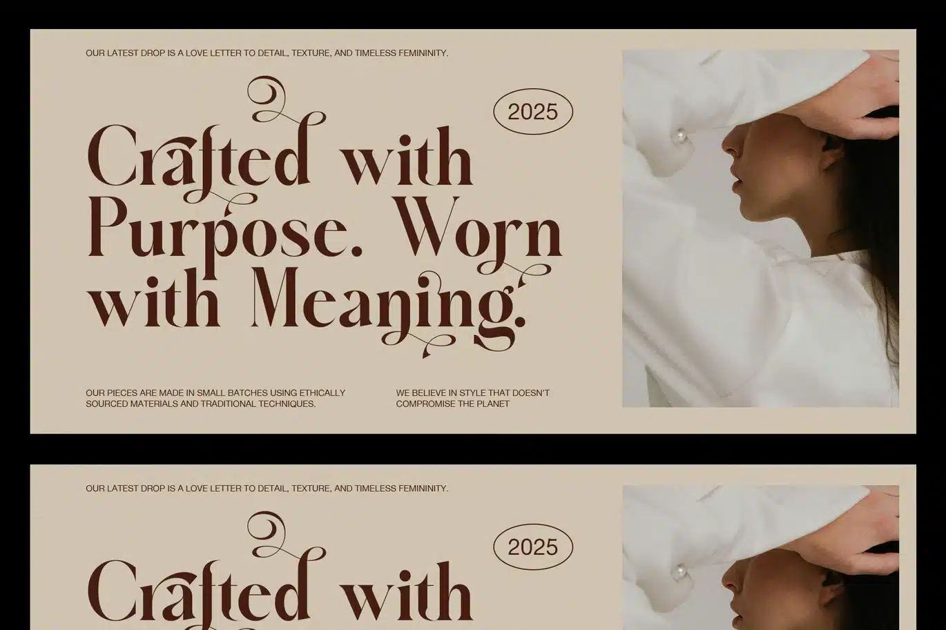 You can pair Halinka with sans-serif fonts for a modern contrast. Alternatively, use it alone to create a timeless and confident aesthetic. Besides, its soft balance between thick and thin strokes adds natural rhythm and visual comfort. This makes it ideal for both headlines and body text.