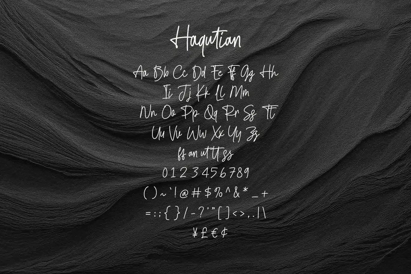 Haqutian is a stylish monoline casual signature script font designed to bring a touch of personal elegance to your creative projects. With its smooth, flowing lines and natural handwritten feel, this font captures the essence of a modern signature. It comes fully equipped with uppercase and lowercase letters, numerals, and punctuation, alongside specialized ligatures to enhance its authentic look. Supporting multiple languages, Haqutian is an ideal choice for branding, photography watermarks, wedding invitations, social media quotes, and high-end product packaging where a sophisticated, personal touch is required.