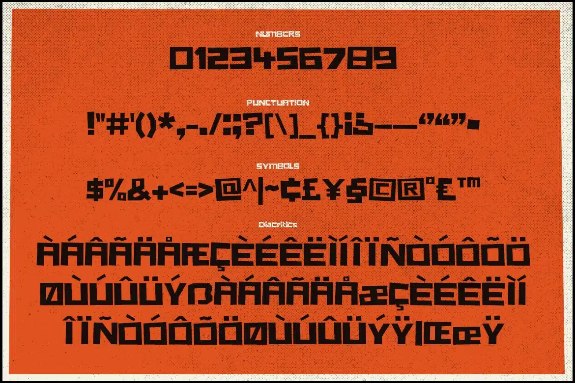 Includes Letters, Numbers, Punctuation, Symbols and support for Western, Central and South Eastern European glyphs.