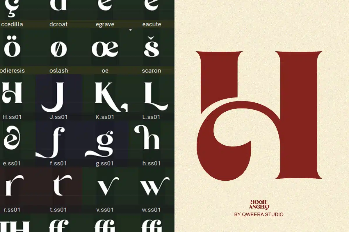 Hogie Angelo combines traditional serif beauty with contemporary design flexibility. Its graceful letterforms and carefully designed alternates make it perfect for creating distinguished branding, luxury logos, premium packaging, and high-end editorial designs that stand the test of time.