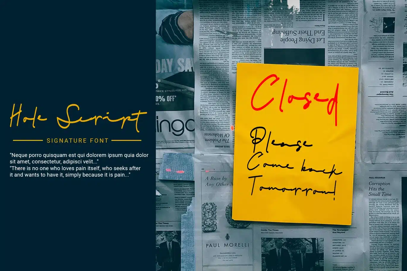 Hole Script Font is very good looking in logo, labels, t-shirt prints, product packaging, invitations, advertising and others.