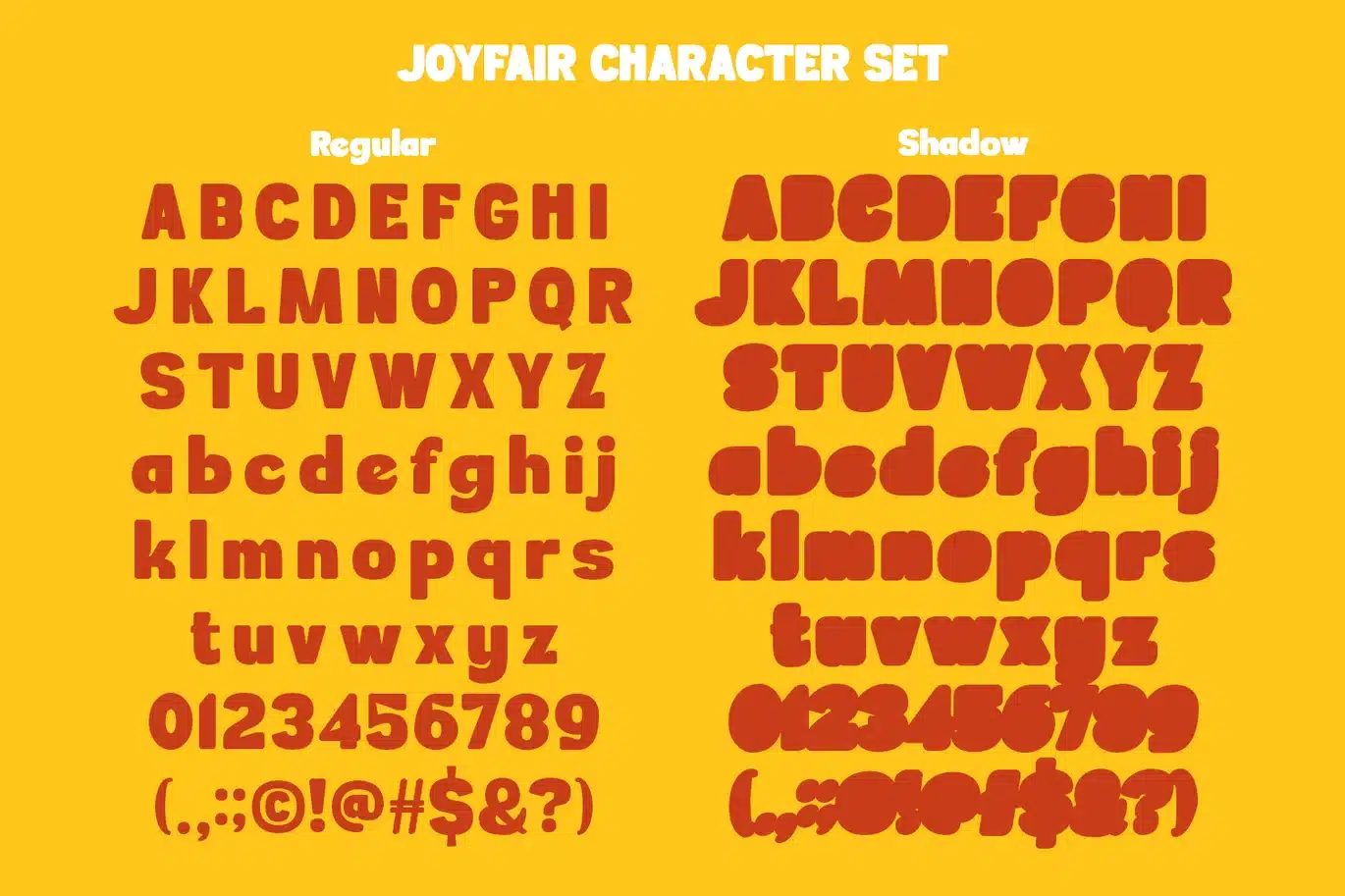 Joyfair is a vibrant and modern bold display font designed to bring clarity, friendliness, and strong visual impact to your typography. Crafted with rounded shapes and consistent proportions, Joyfair offers a smooth, balanced appearance that feels both approachable and professional. Itβs the perfect choice for designers looking for a bold typeface that delivers personality without sacrificing readability. In addition, enjoy the features here.